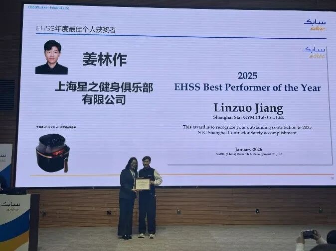 近日,沙伯基础2025年供应商表彰大会上传来捷报!凭借在健康管理、安全运营及健身服务领域的卓越表现,星之健身荣膺沙伯基础2025年“EHSS年度协作奖”,门店主管姜林作更是凭借突出贡献,斩获“EHSS年度最佳个人奖”,双喜临门,彰显专业实力。